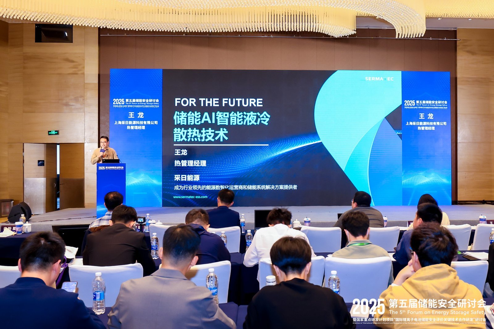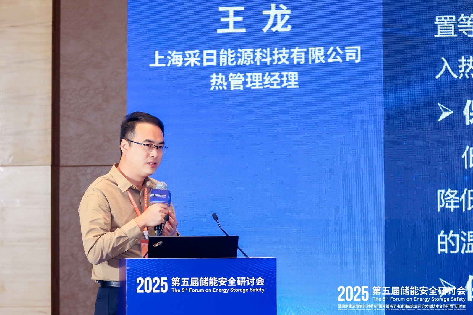 近日,2025第五届储能安全研讨会在天津市成功举办,上海采日能源科技有限公司热管理经理王龙出席会议,并作题为《储能AI智能液冷散热技术》的演讲分享,展现出采日能源在储能新业态下的技术领导力。